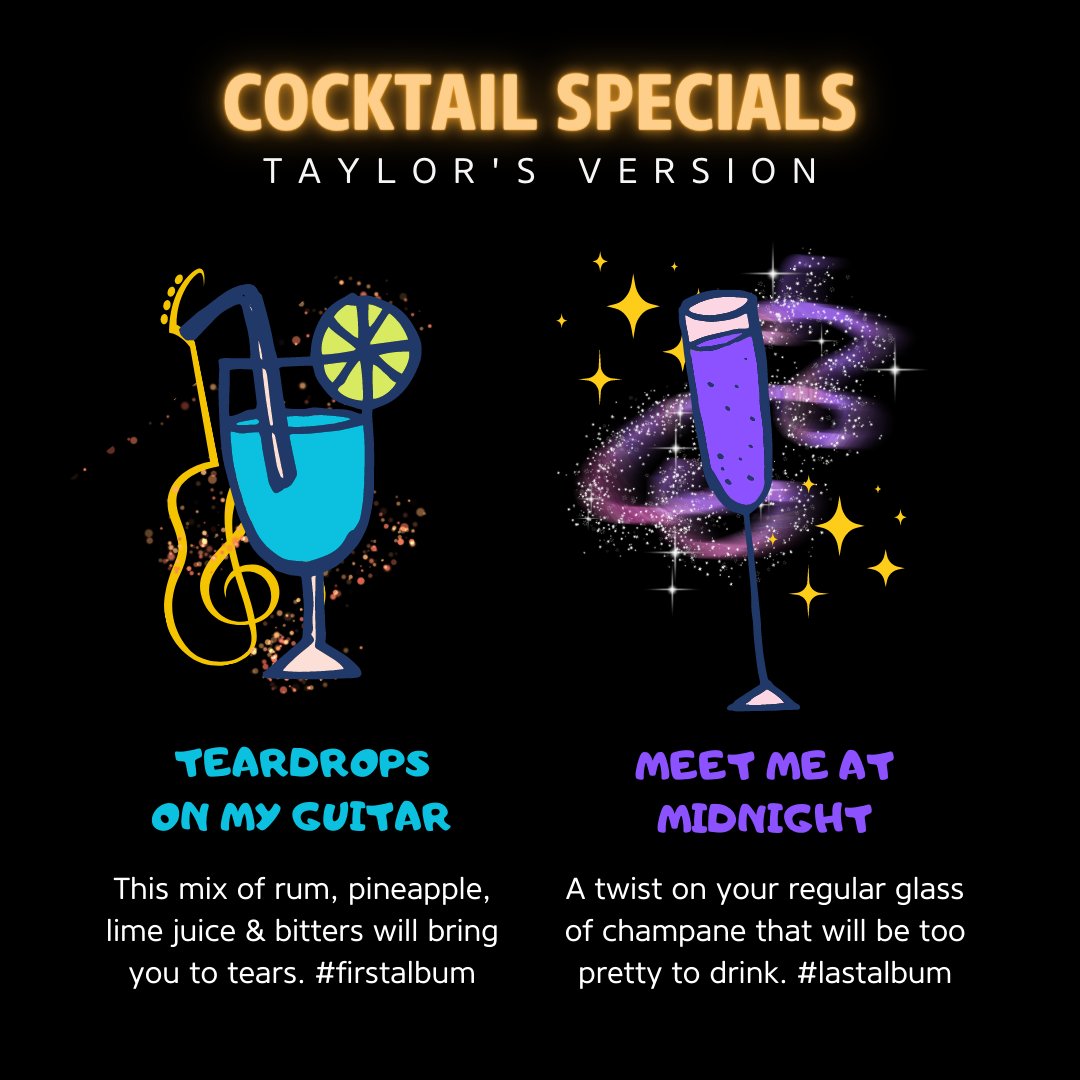 Attention all @taylorswift13 fans! We've got some cocktails you'd love to try 👏 hop on either of our sightseeing cruises anytime this weekend and get a taste of magic. We've got two drinks that resemble both her first and last album!